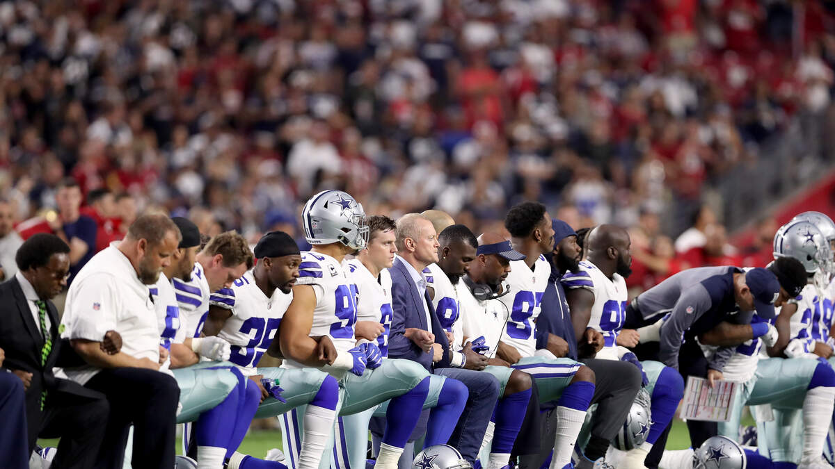 Cowboys owner Jerry Jones and the Dallas Cowboys took a knee prior to the national anthem on Monday Night Football to show unity after President Donald Trump criticized players who took a knee during the national anthem.